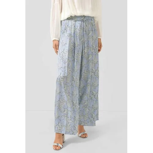 Met deze lichtblauwe satijnen wide leg broek van s.Oliver BLACK LABEL wissel je moeiteloos af tussen je dagelijkse look en je party-outfit. De soepelvallende stof met subtiele glans en bladerprint all-over geeft een verzorgde uitstraling. De hoge taille en de wijde pijpen zorgen samen voor een silhouet dat mooi meebeweegt bij elke stap, of je nu richting kantoor gaat of een feestelijke gelegenheid hebt.Verfijnde details en comfortabel draaggevoel Gemaakt van 100% viscose, een soepele stof met satijnlook die zacht aanvoelt op de huid Hoge taille met ceintuur en riemlussen voor een nette, aangeklede uitstraling Wijde pijpen (wide leg) voor een elegante, vloeiende look 7/8 lengte, ideaal om je favoriete hakken of sandalen te laten zien Lichtblauwe kleur met bladprint all-over voor een frisse, hedendaagse uitstraling Glad voorpand zonder zichtbare zakken voor een rustige, verfijnde voorkantVan werkdag tot avond uitDeze broek is een praktische keuze voor business meetings en nette kantoorlooks, gecombineerd met een blouse en hakken. Voor een feestelijke gelegenheid past de satijnachtige glans goed bij een top in een effen kleur en sieraden. De lichte draagbaarheid maakt het ook een prettig item voor lentedagen.s.Oliver BLACK LABEL: verfijnd en verzorgds.Oliver BLACK LABEL richt zich op moderne, verzorgde outfits met een elegante uitstraling. De collecties combineren doordachte pasvormen met hoogwaardige materialen en nette afwerkingen, waardoor de kleding goed aansluit bij zowel zakelijke als meer feestelijke momenten.Een veelzijdige basisbroek die je garderobe een verfijnde update geeft.