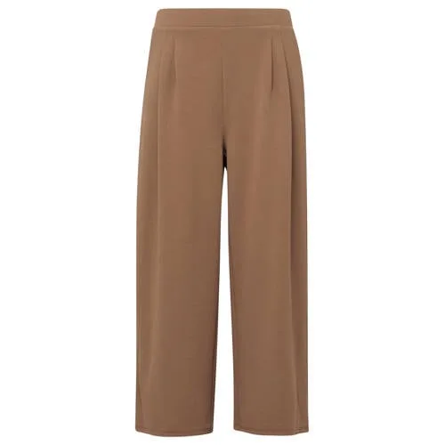 Met deze bruine culotte broek voor dames van s.Oliver BLACK LABEL voeg je een veelzijdig item toe aan je garderobe. De broek heeft een ontspannen, moderne look met cropped lengte en wijde pijpen. De soepele interlock-jersey valt mooi langs het lichaam en beweegt makkelijk met je mee, zodat je er de hele dag comfortabel in rondloopt.Comfort en stijl in één Relaxed fit met wide leg pijpen voor een elegante, losse uitstraling Cropped 7/8 lengte die enkels subtiel vrij laat Elastische tailleband voor een comfortabele pasvorm en makkelijk aantrekken Hoge bandhoogte die prettig in de taille zit Plooidetail aan de voorzijde voor een verzorgde, geklede look Steekzakken voor, sierzakken en zakken achter voor een nette afwerking Effen bruine kleur, eenvoudig te combineren met basics en statement tops Zachte stretchstof met interlock-jersey structuur voor extra draagcomfortVan werkdag tot avond uitDeze broek past bij veel momenten op een dag. Voor een business outfit combineer je de culotte met een blouse en loafers. In je vrije tijd draag je de broek met een T-shirt en sneakers. Naar een feestje staat een top met lichte glans en hakken er mooi bij. Door de rustige bruine tint vormt de broek een fijne basis voor verschillende looks.s.Oliver BLACK LABEL: verfijnde dagelijkse modes.Oliver BLACK LABEL richt zich op kleding met een verzorgde, vrouwelijke uitstraling. De ontwerpen zijn draagbaar voor alledag, maar sluiten ook goed aan bij gelegenheden waar je net wat gekleder voor de dag wilt komen. Met deze broek kies je voor een stijl die er netjes uitziet en toch heel comfortabel voelt.Een ontspannen, bruine culotte die moeiteloos meebeweegt met jouw dag.