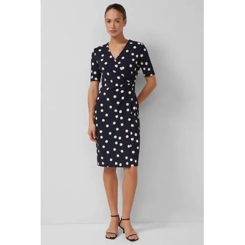 dames midi-jurk van s.Oliver BLACK LABEL;Look: All-over motief, wikkellook;pasvorm: getailleerd;Lengte: midi;hals: V-hals;Patroon: polka dots;Applicatie: O-ring;mouwvorm: korte mouw