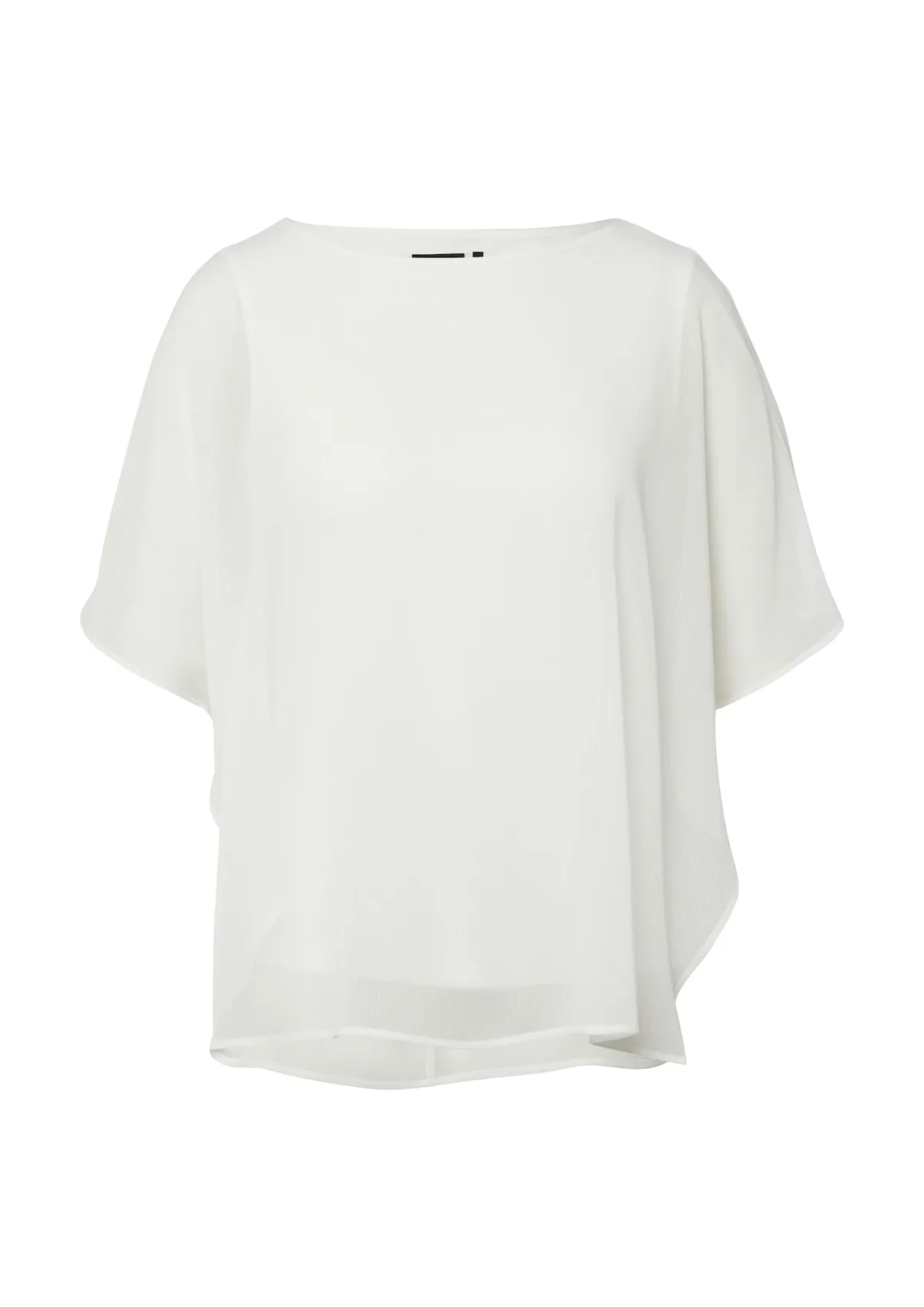 Deze ecru dames top van s.Oliver BLACK LABEL brengt een subtiele glans in je garderobe. De combinatie van een zachte jersey basis met een luchtige chiffonlaag geeft een mooi laagjeseffect dat net wat specialer oogt dan een gewone top. Het glittergaren is verfijnd verwerkt, waardoor de top zowel geschikt is voor een werkdag als voor een etentje of feestelijke gelegenheid.Verfijnde details en prettig draagcomfort Relaxed fit voor een losjes vallend silhouet dat niet aftekent Laagjeseffect met soepele jersey en semi-transparante chiffon voor een elegante uitstraling Verwerkt glittergaren dat een subtiele glans toevoegt zonder te overdrijven Boothals die de halslijn mooi accentueert Mouwloos ontwerp met oversized schouders voor een moderne, vrouwelijke look Gemaakt van 95% viscose en 5% elastine voor een zachte touch en lichte stretch Effen ecru kleur die makkelijk combineert met zowel lichte als donkere onderstukkenVan kantoor tot feestjeDeze top past moeiteloos in verschillende situaties. Combineer met een nette broek of blazer voor een business look, of draag hem op een rok of jeans voor een casual dag. Voor een feestje komt de lichte glans van het glittergaren mooi tot zijn recht in combinatie met hakken en sieraden.s.Oliver BLACK LABEL: moderne vrouwelijkheids.Oliver BLACK LABEL staat bekend om stijlvolle items met een verzorgde uitstraling, ontworpen voor vrouwen die houden van een moderne, vrouwelijke stijl. Materialen, pasvorm en details worden zorgvuldig op elkaar afgestemd, zodat je kiest voor kleding die prettig draagt en er tegelijkertijd geraffineerd uitziet.Een veelzijdige top die het hele seizoen door een mooie basis vormt voor jouw outfits.