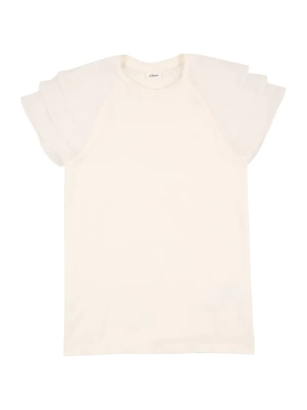Design: Gevoerde zoom/rand, Raglanmouwen, Nektape; Materiaal: Jersey; Motief: Effen; Kraag: Zonder kraag; Details: Volant; Extra's: Op staal naden, Voelt zacht aan; Pasvorm: Normale pasvorm; Armlengte: Kwartmouw; Lengte: Normale lengte