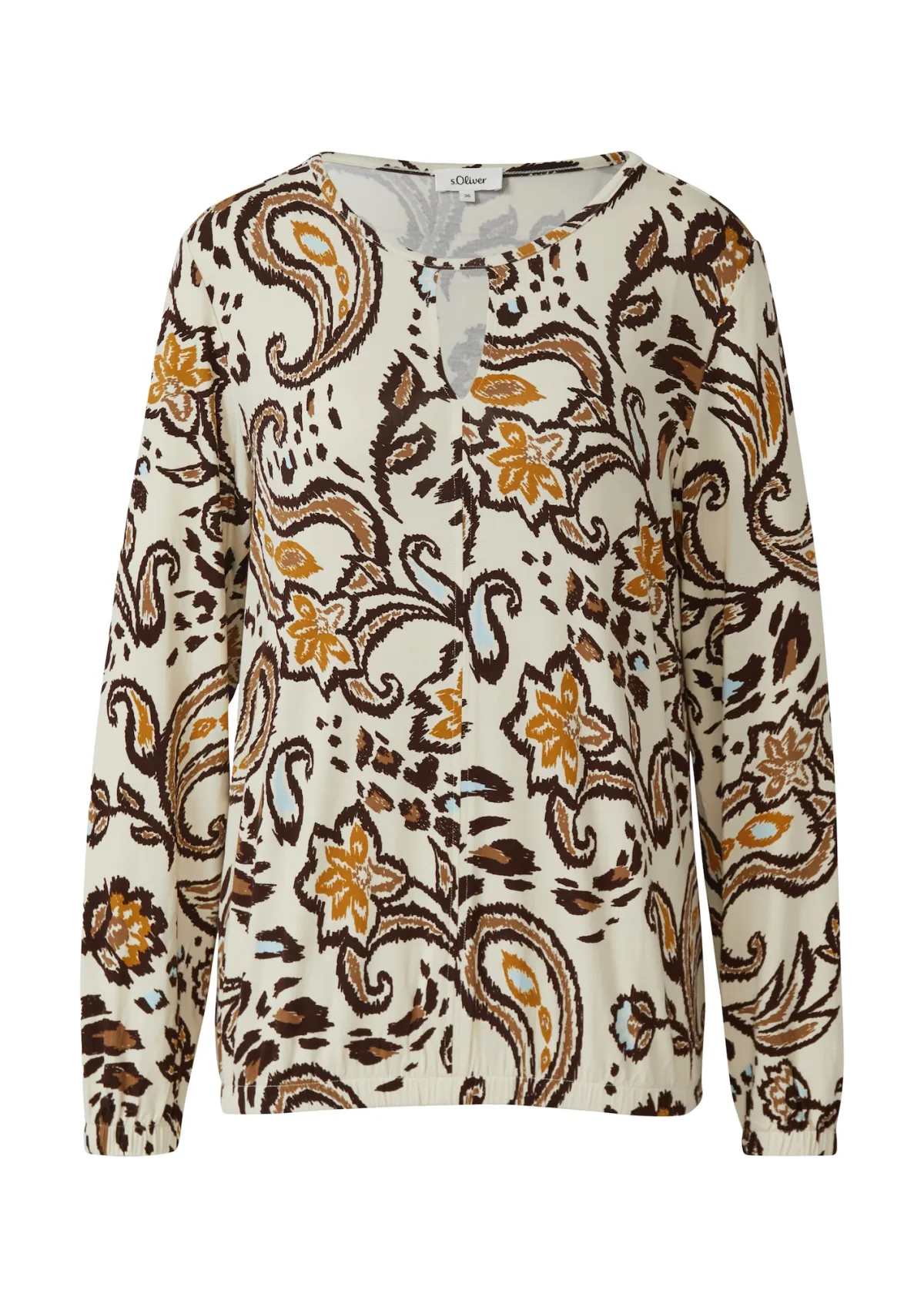 Blouse type: Blouseshirt; Materiaal: Viscose; Motief: Paisley; Kraag: Zonder kraag; Details: Cut-outs; Pasvorm: Losse pasvorm; Armlengte: Lange mouw; Lengte: Normale lengte