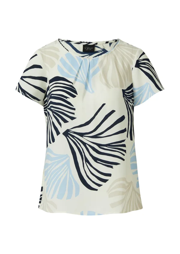 Blouseshirt voor dames van s.Oliver BLACK LABEL;Look: All-over motief;Pasvorm: Loose fit;Hals: ronde hals;Details: plooien, stolpplooi;Mouwvorm: korte mouwen;Rompzoom: licht afgerond;Materiaalverwerking: Chiffon