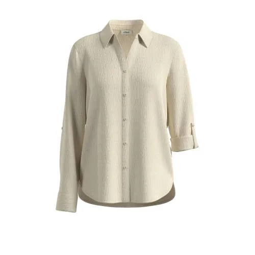 Deze s.Oliver blouse met lange mouwen is een praktische basis voor elke dag. De blouse heeft een casual uitstraling met een klassieke overhemdkraag en een regular fit die soepel om het lichaam valt. De gestructureerde stof in effen kleur geeft net wat extra diepte aan je outfit, terwijl het langere achterpand zorgt voor een moderne, ontspannen look.Verfijnde details voor elke dag Casual stijl met klassieke overhemdkraag voor een rustige, klassieke uitstraling Regular fit, comfortabel en makkelijk te combineren met broeken en rokken Langer achterpand en afgeronde zoom voor een soepel vallend silhouet Lange rechte mouwen met manchetten en omslag voor een netjes afgewerkte look Effen design, ideaal als basisstuk onder een vest, blazer of trui Gemaakt van 78% polyester, 21% viscose en 1% elastine voor een soepele stof met lichte stretch Zonder zakken voor een rustige, strakke voorkant Knoopsluiting over de hele lengte, makkelijk in gebruikCasual combineren van werk tot weekendDoor de rustige effen kleur en de gestructureerde stof past deze blouse in veel situaties. Combineer met een jeans voor een casual dag, of draag de blouse in een nette broek voor een zakelijke werkoutfit. Dankzij de omslag bij de mouwen kies je eenvoudig tussen opgerolde of volledig lange mouwen.s.Oliver: eigentijdse mode met aandacht voor details.Oliver staat bekend om draagbare mode met een eigentijdse uitstraling. De ontwerpen zijn gericht op dagelijks gebruik, met oog voor pasvorm en praktische details. Met deze blouse kies je voor een kledingstuk dat seizoen na seizoen in je garderobe past.Deze moderne, casual blouse vormt een rustige en praktische basis in je garderobe.