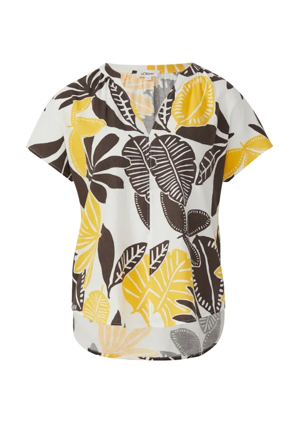 s.Oliver Blouse ecru / donkerbruin / geel Prijzen