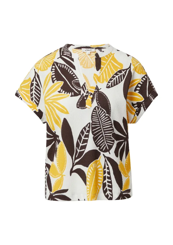 s.Oliver Blouse ecru / donkerbruin / goudgeel