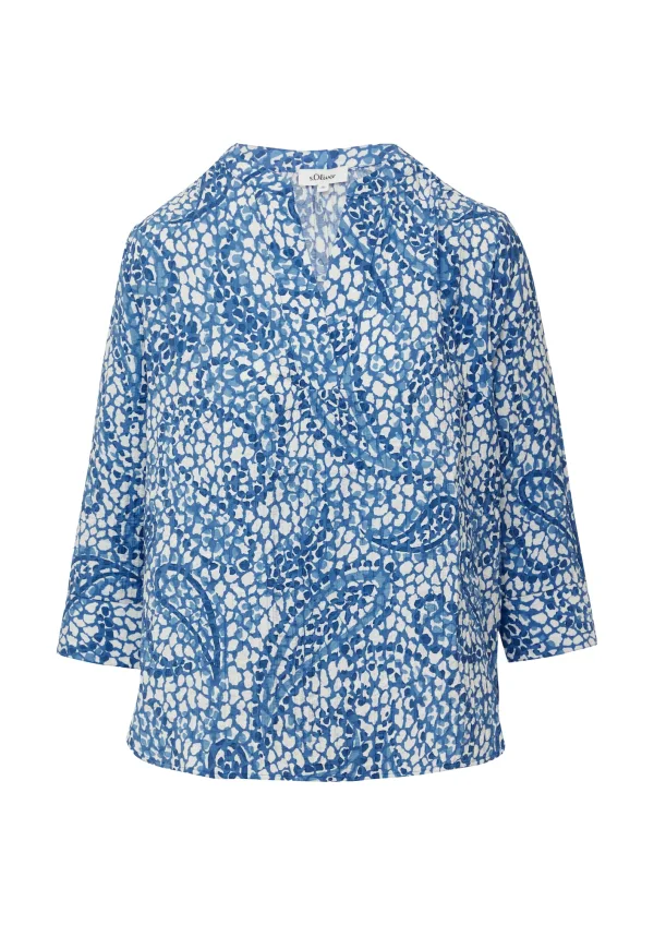 Blouse type: Blouseshirt; Design: Gevoerde zoom/rand, Verlengd rugpand; Materiaal: Viscose; Kraag: Tuniek kraag; Details: Gedrapeerd; Extra’s: All-over patroon; Pasvorm: Normale pasvorm; Armlengte: Driekwart mouw; Lengte: Normale lengte