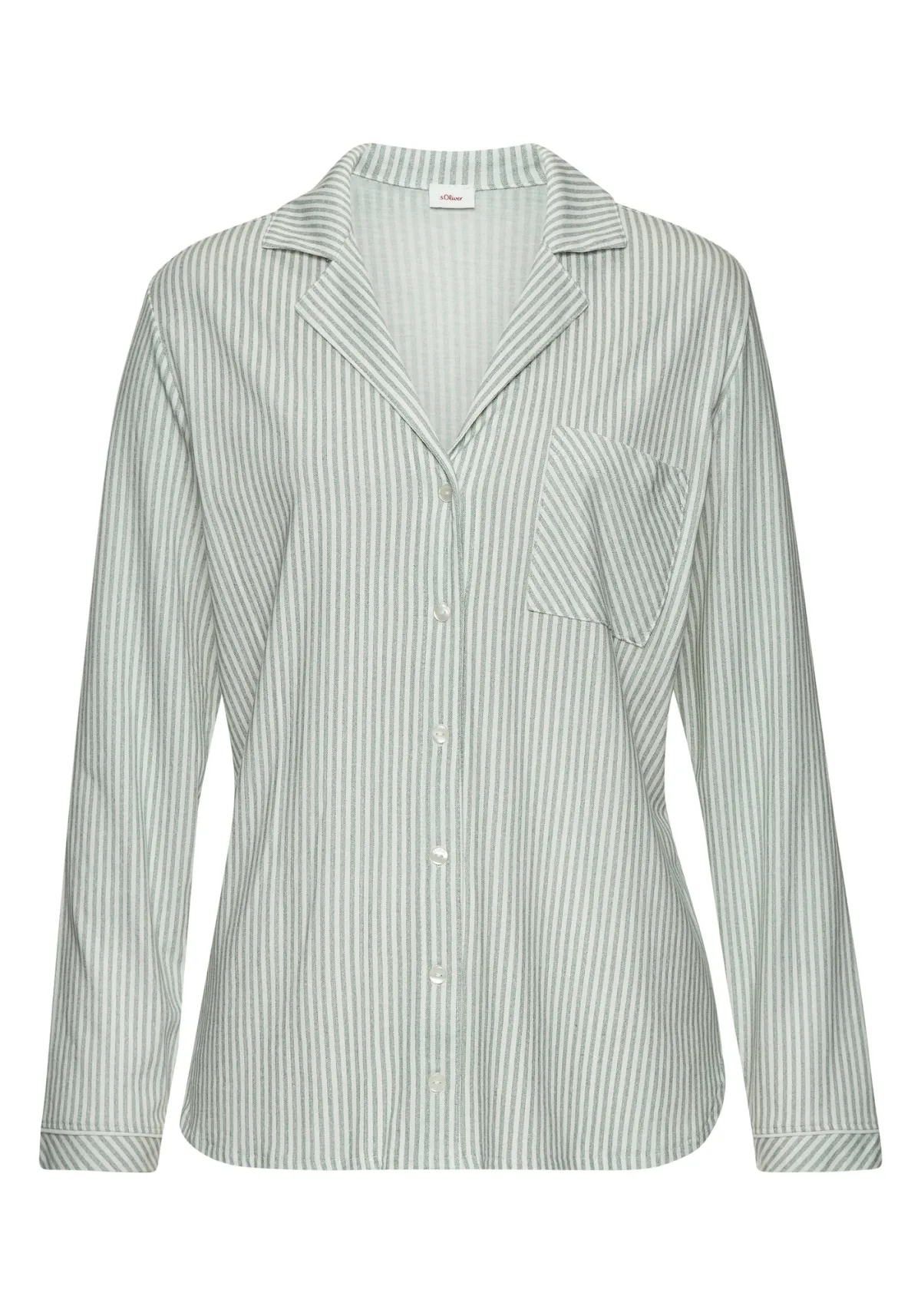 Pyjamabovendeel van s.Oliver RED LABEL voor dames;Katoen- en viscosemix;Los model;Model 'Everyday';Streepmotief;Platte kraag;Doorknoopsluiting;Opgestikte borstzak