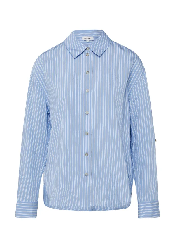 dames overhemdblouse van s.Oliver RED LABEL;look: all-over motief;Pasvorm: relaxed fit;kraagmodel: overhemdkraag;Patroon: gestreept;Details: overgesneden schouders, achterpas;hals: V-hals;Sluiting: enkele knoopsluiting;Mouwvorm: lange mouw;mouwboord: manchet;rompzoom: afgerond, met zijsplitten;materiaalverwerking: popeline;Materiaal: viscosemix