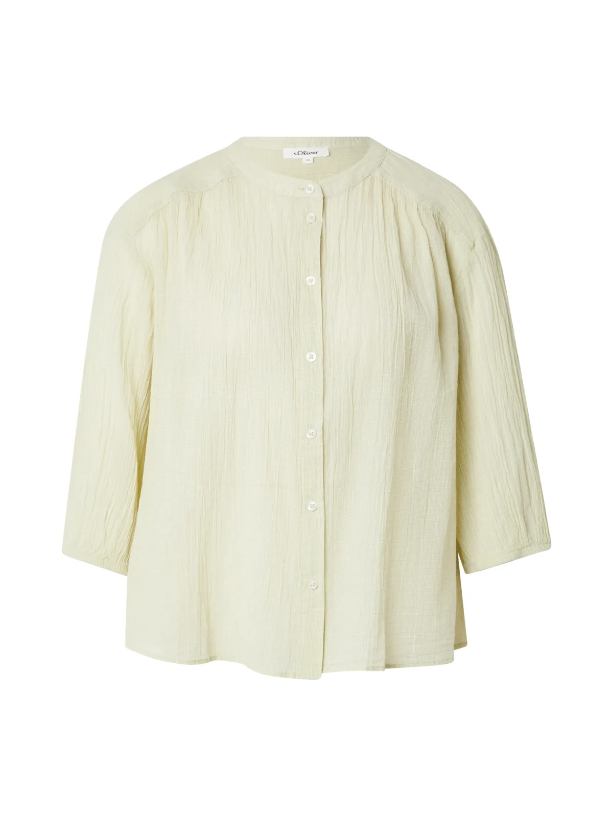 Blouse type: Klassieke blouse; Design: Gevoerde zoom/rand, Knop placket, Raglanmouwen; Type sluiting: Knoopsluiting; Materiaal: Katoen; Kraag: Zonder kraag; Details: Gedrapeerd; Extra's: Lichte stof, Crinkle look; Pasvorm: Losse pasvorm; Armlengte: Driekwart mouw; Lengte: Normale lengte