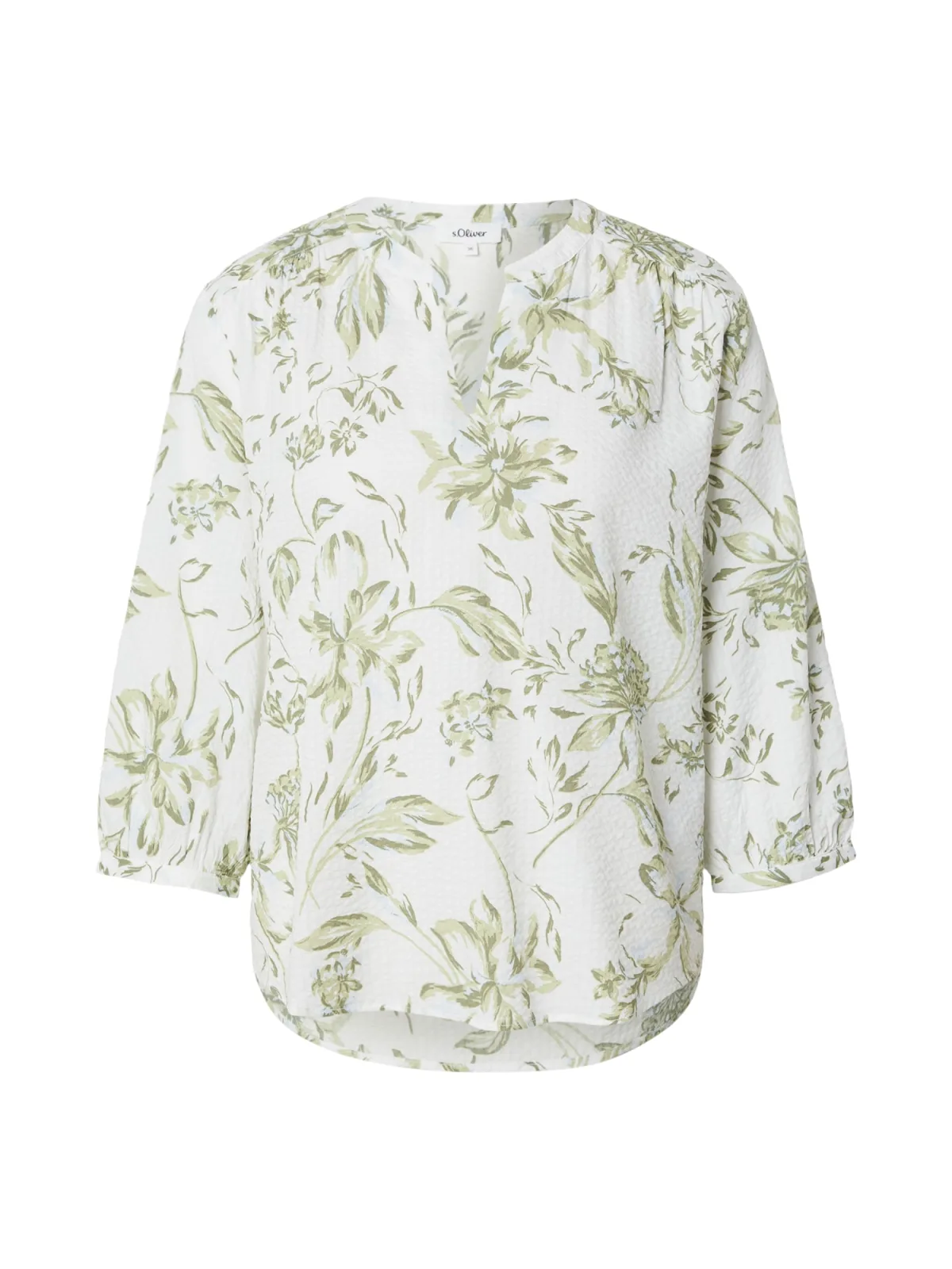 Blouse type: Blouseshirt; Design: Gevoerde zoom/rand, Ronde zoom; Materiaal: Viscose; Motief: Bloemenprint; Kraag: Tuniek kraag; Details: Gedrapeerd; Extra's: All-over patroon, Gladde stof; Pasvorm: Normale pasvorm; Armlengte: Driekwart mouw; Lengte: Normale lengte
