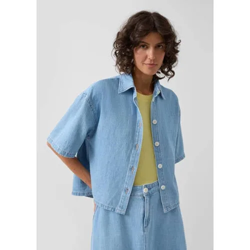 Op zoek naar een luchtig bovenstuk dat goed past bij jeans en ook bij een nette pantalon? Deze lichtblauwe denim blouse van 100% katoen voor dames van s.Oliver is een praktische optie voor elke dag. De boxy pasvorm met oversized schouders geeft een moderne, relaxte look, terwijl de klassieke overhemdkraag en knoopsluiting zorgen voor een rustig en verzorgd beeld. De stof voelt soepel aan en is ideaal voor het voorjaar en frisse zomerdagen.Licht denim met een moderne boxy fit Gemaakt van 100% katoen voor een luchtig en ademend gevoel Stof met denim look in lichtblauwe kleur voor een casual uitstraling Boxy pasvorm met oversized schouders voor een hedendaagse, ontspannen fit Half lange, rechte mouwen die net boven de elleboog vallen Klassieke overhemdkraag en volledige knoopsluiting aan de voorkant Effen ontwerp zonder zakken voor een strak en rustig silhouet Zoom met nette naadafwerking voor een verzorgde look, ook als de blouse los wordt gedragenCasual styling voor elke dagDeze blouse past goed bij je dagelijkse garderobe. Draag het model open over een T-shirt voor een laagjeslook, of dichtgeknoopt op een straight fit jeans of een korte broek. De luchtige katoenkwaliteit maakt het een fijn item voor het voorjaar en milde zomerdagen.s.Oliver: moderne basics voor elke dags.Oliver staat bekend om eigentijdse kleding die makkelijk te combineren is. De ontwerpen sluiten aan op het dagelijkse leven, met aandacht voor pasvorm en draagcomfort. Zo voeg je met deze blouse een betrouwbaar basisstuk toe aan je kast, waar je vaak naar zult grijpen.Een veelzijdig item dat je outfits op een eenvoudige manier compleet maakt.