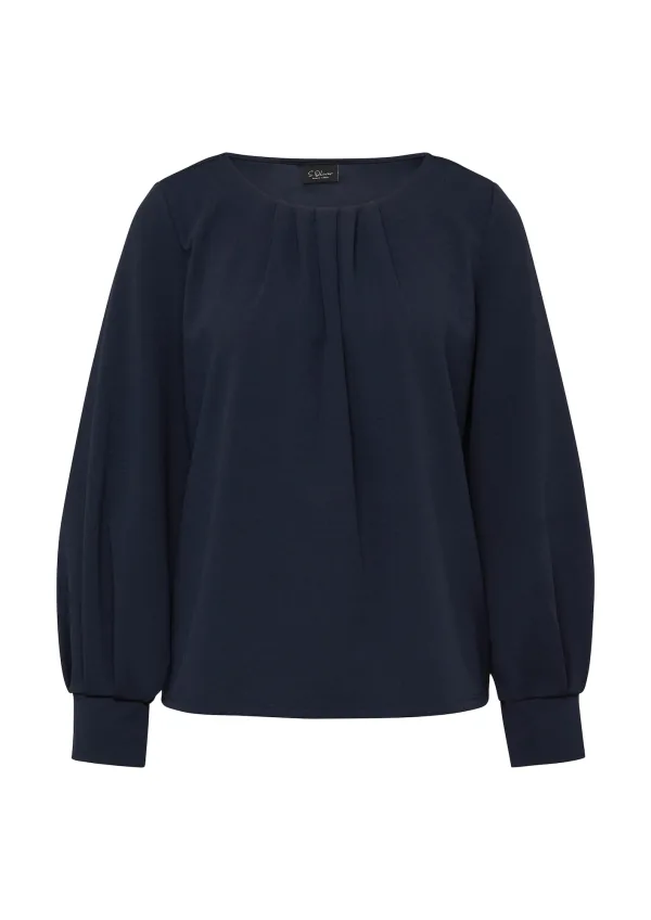 Blouse type: Blouseshirt; Design: 1-knoops manchetten, Rechte zoom, Pofmouwen; Type sluiting: Slip; Materiaal: Crêpe; Motief: Effen; Kraag: Zonder kraag; Details: Plooien; Extra's: Op staal naden; Pasvorm: Normale pasvorm; Armlengte: Lange mouw; Lengte: Normale lengte