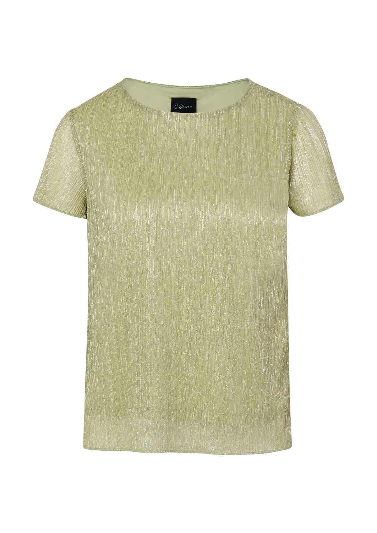 Deze lichtgroene glitter top met korte mouwen van s.Oliver BLACK LABEL geeft een subtiele glans aan je garderobe. De glitters vangen het licht, terwijl de regular fit en soepele jersey stof zorgen voor een ontspannen pasvorm. De deels gevoerde voorkant maakt de top prettig om zo te dragen en geeft net wat extra comfort.Glanzende details in een comfortabele pasvorm Lichtgroene kleur met glitters voor een verfijnde, feestelijke uitstraling Regular fit die soepel langs het lichaam valt Zachte jersey stof die prettig aanvoelt op de huid Deels gevoerd aan de binnenkant voor extra comfort en minder doorschijnen Korte, rechte mouwen en ronde hals voor een tijdloze look Effen ontwerp zonder zakken, waardoor de glans van de stof centraal staat Bevat metallic garens voor een subtiele sparkle bij elke bewegingGeschikt voor verschillende momentenDeze top leent zich goed voor gelegenheden waar je er net wat gekleder uit wilt zien. Denk aan een werkdag op kantoor, een etentje of een feestelijke bijeenkomst. In het voorjaar draag je de top handig onder een blazer, in de zomer kan hij zo op de huid worden gedragen.s.Oliver BLACK LABEL in het korts.Oliver BLACK LABEL richt zich op geklede, moderne mode met een verzorgde uitstraling. De collecties hebben aandacht voor materialen, nette afwerking en pasvormen die prettig zitten in het dagelijks leven. Met deze top kies je voor een item dat makkelijk combineert binnen een geklede garderobe.Een glanzende basis voor outfits die verzorgd ogen en comfortabel aanvoelen.