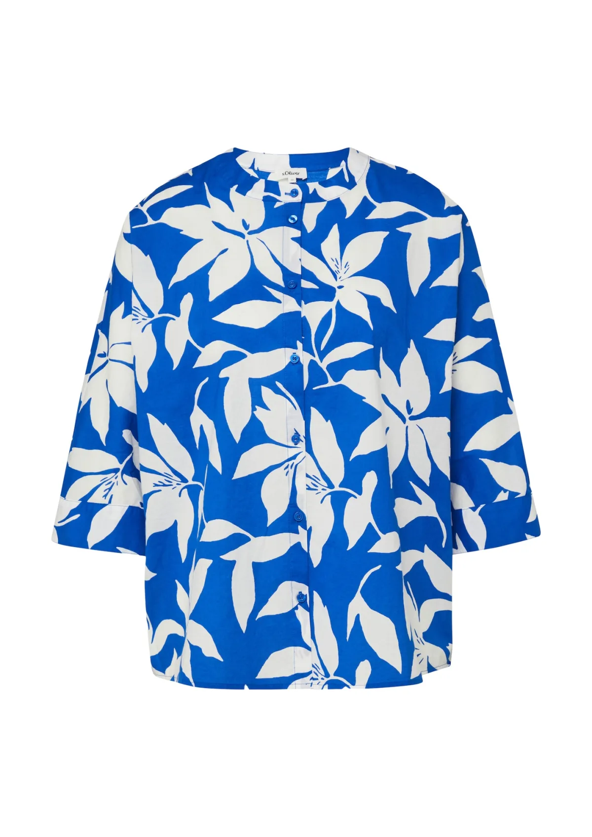Blouse type: Klassieke blouse; Design: Knop placket, Overcut schouder; Type sluiting: Knoopsluiting; Materiaal: Katoen; Motief: Bloemenprint; Kraag: Zonder kraag; Extra's: All-over patroon, Voelt zacht aan; Pasvorm: Losse pasvorm; Armlengte: Driekwart mouw; Lengte: Normale lengte