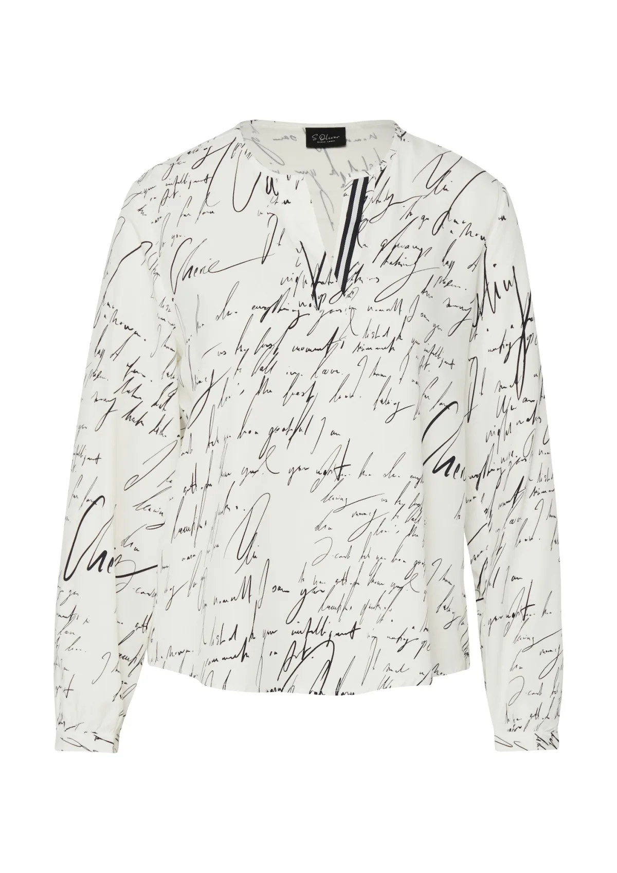 Dames Blouse met lange mouwen van s.Oliver BLACK LABEL;Look: All-over motief;Pasvorm: relaxed fit;Kraagmodel: SCHIPPERSTRUI;Hals: V-hals;Mouwvorm: lange mouw;Mouwboord: smalle manchet;Materiaal: zuiver viscose