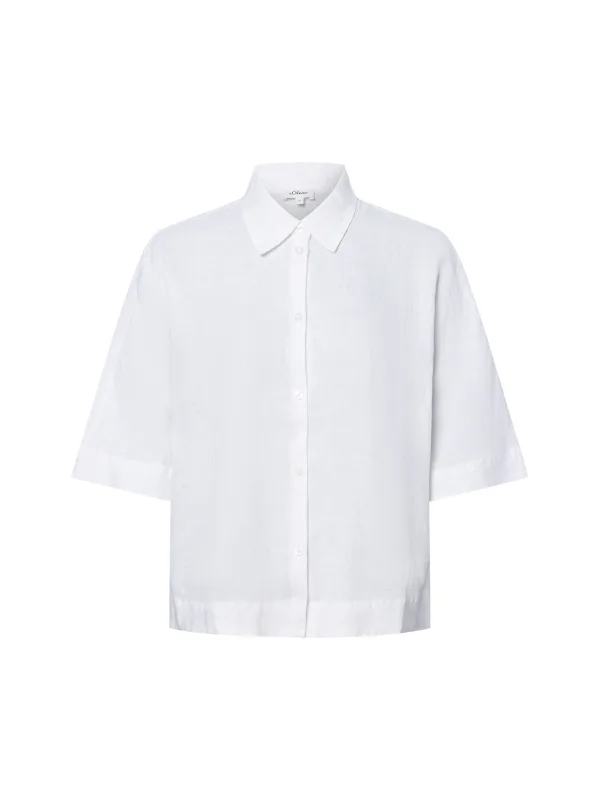 Blouse type: Klassieke blouse; Design: Gesneden mouw, Rechte zoom, Knop placket; Type sluiting: Knoopsluiting; Materiaal: Linnen; Motief: Effen; Kraag: Kentkraag; Extra's: Op staal naden, Lichte stof; Pasvorm: Losse pasvorm; Armlengte: Halve mouw; Lengte: Normale lengte