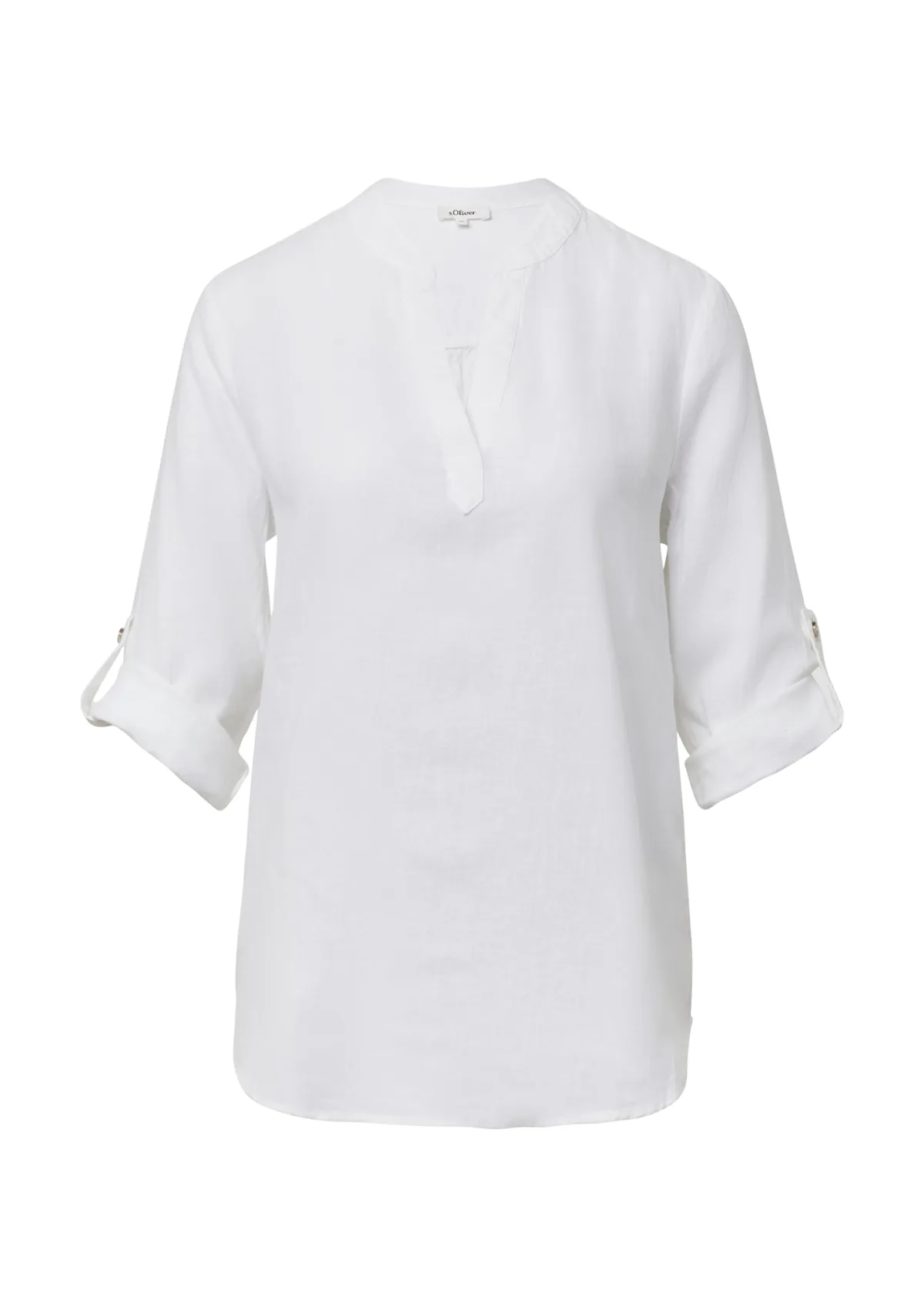 Blouse type: Blouseshirt; Design: Gevoerde zoom/rand, Roll-up mouwen; Materiaal: Linnen; Motief: Effen; Kraag: Tuniek kraag; Details: Plooien; Extra’s: Op staal naden, Lichte stof; Pasvorm: Normale pasvorm; Armlengte: Halve mouw; Lengte: Normale lengte
