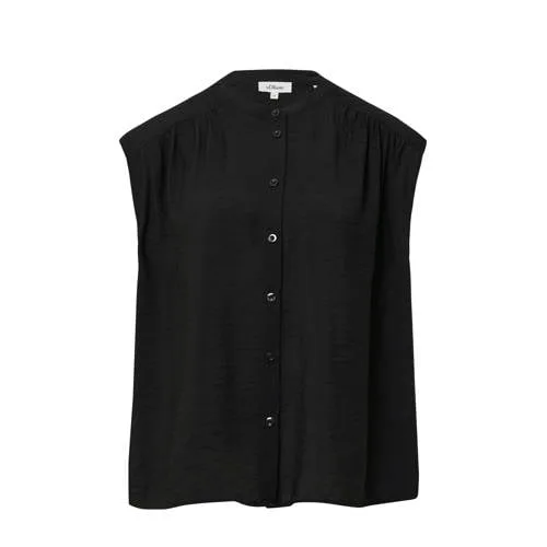 deze blouse van s.Oliver is mouwloos en heeft een ronde hals met knoopsluiting gemaakt van viscose. de stof voelt soepel, je combineert deze blouse makkelijk met jouw favoriete outfit