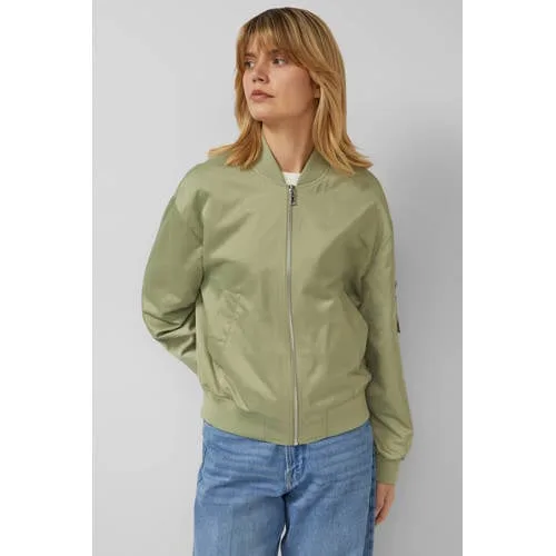 Ga zorgeloos de deur uit met deze s.Oliver outdoor jas in groen. De jas heeft een comfortabele relaxed fit en valt op heuplengte, waardoor er genoeg ruimte is voor een trui of sweater eronder. De subtiel glanzende stof geeft de klassieke bomberstijl een moderne uitstraling, passend bij zowel een casual als een sportieve look.Praktische details voor elke dag Opstaande kraag met geribde rand voor extra warmte rond je nek Geribde boorden aan mouwen en zoom zodat de jas mooi aansluit Langemouw model met elastische manchetten voor een fijne pasvorm Zijzakken en een zak op de mouw om kleine essentials bij de hand te houden Tussenjas met geweven buitenkant en voering, geschikt voor het tussenseizoen Effen groene kleur die makkelijk te combineren is met jeans, leggings en jurken Ritssluiting over de hele lengte voor snel aan- en uittrekkenGroene bomber voor buitenmomentenDeze buitenjas uit de ‘Daily’ collectie is gemaakt voor alledaagse momenten buiten. Denk aan een wandeling naar school of werk, een rondje met de hond of een snelle boodschap in de stad. De middel-lange lengte en rechte mouwen zorgen voor bewegingsvrijheid, terwijl de geribde details alles netjes op zijn plek houden.De stijl van s.Olivers.Oliver staat bekend om draagbare mode met een duidelijke focus op comfort en pasvorm. De collecties sluiten aan op een druk dagelijks leven, waarbij kleding er goed uitziet en tegelijk praktisch is. Deze jas past daar goed bij, met doordachte details en een effen groene kleur.Een praktische buitenjas die het hele tussenseizoen met je meebeweegt.