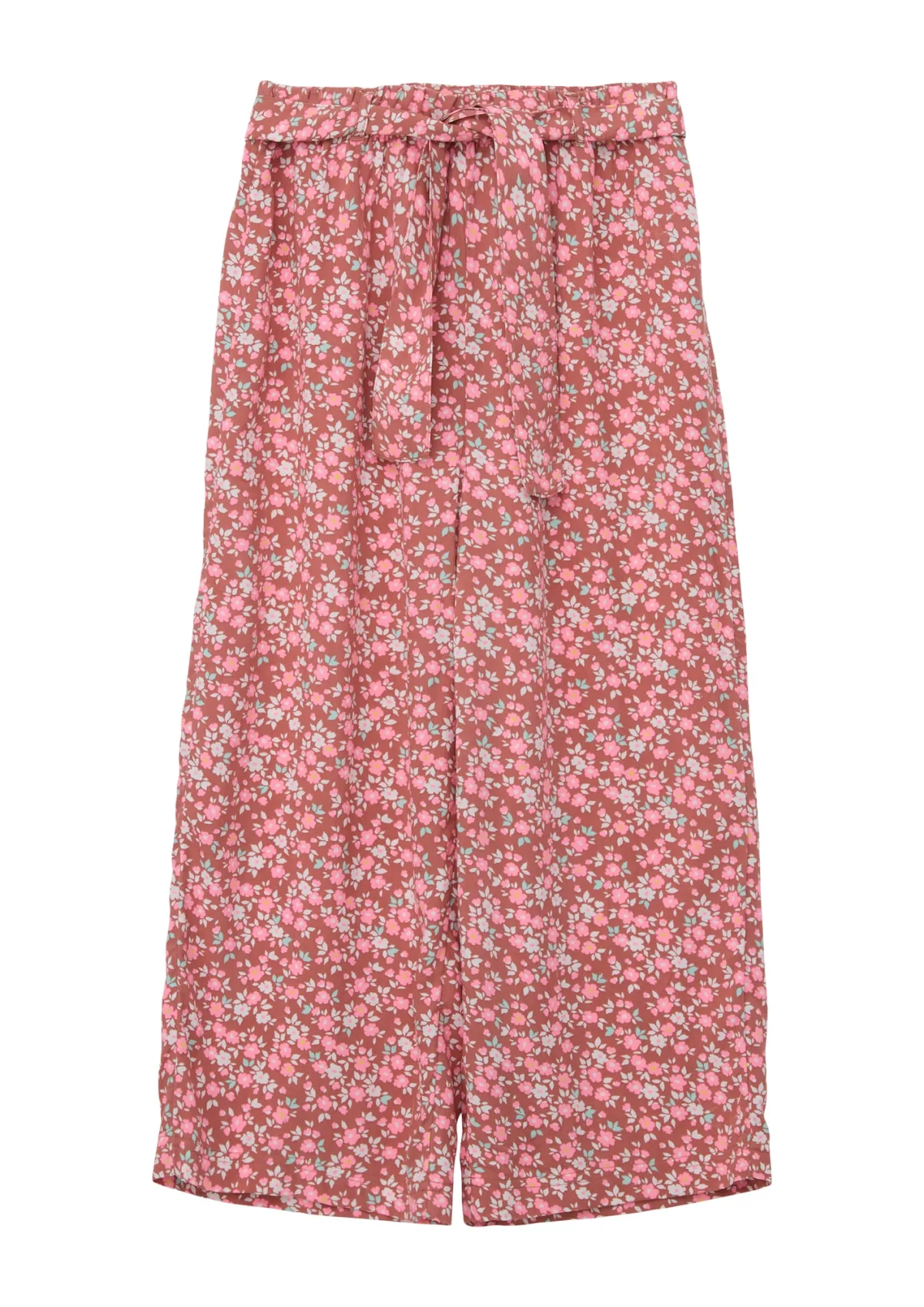 Design: Elastische taille/zoom; Type sluiting: Elastische band; Materiaal: Viscose; Motief: Bloemenprint; Details: Gedrapeerd; Extra's: All-over patroon, Riemlussen; Lengte: 7/8 lengte; Pasvorm: Loosefit; Taillehoogte: High waist