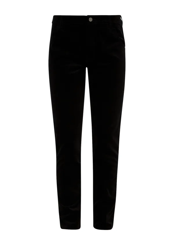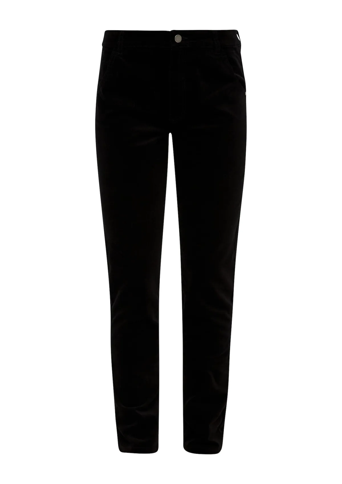 Design: Gevoerde zoom/rand, Ritssluiting, 5-pocket-style; Type sluiting: Knoopsluiting; Materiaal: Fluweel/Nicky Velours; Motief: Effen; Extra's: Op staal naden, Voelt zacht aan, Riemlussen; Lengte: Lang/maxi; Pasvorm: Slimfit; Taillehoogte: Mid waist