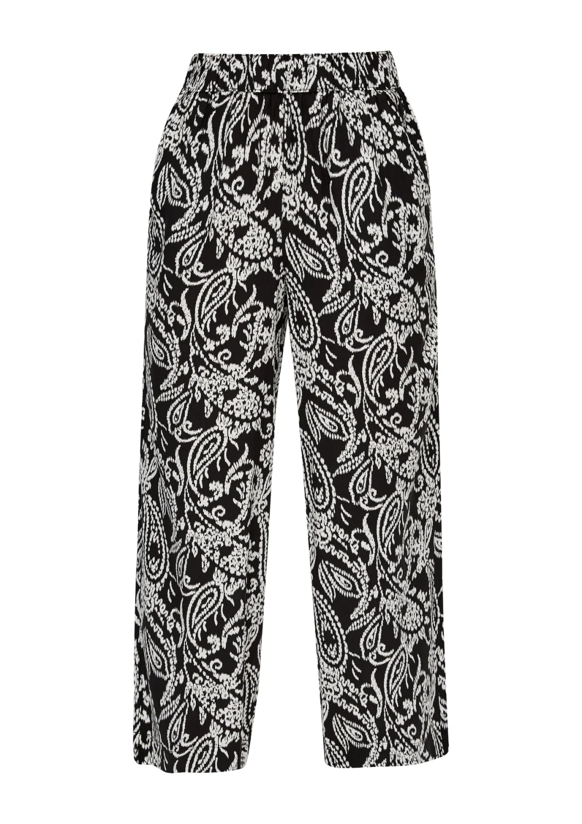 Design: Elastische taille/zoom, Zakken aan de zijkant; Materiaal: Viscose; Motief: Bloemenprint; Details: Gedrapeerd; Extra's: All-over patroon, Gladde stof; Lengte: 7/8 lengte; Pasvorm: Wide leg; Taillehoogte: High waist