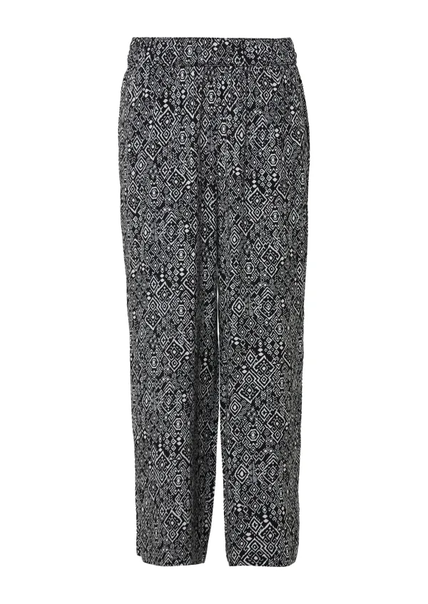 Design: Gevoerde zoom/rand, Elastische taille/zoom, Zakken aan de zijkant; Materiaal: Viscose; Details: Gedrapeerd; Extra's: All-over patroon, Gladde stof; Lengte: 7/8 lengte; Pasvorm: Wide leg; Taillehoogte: High waist