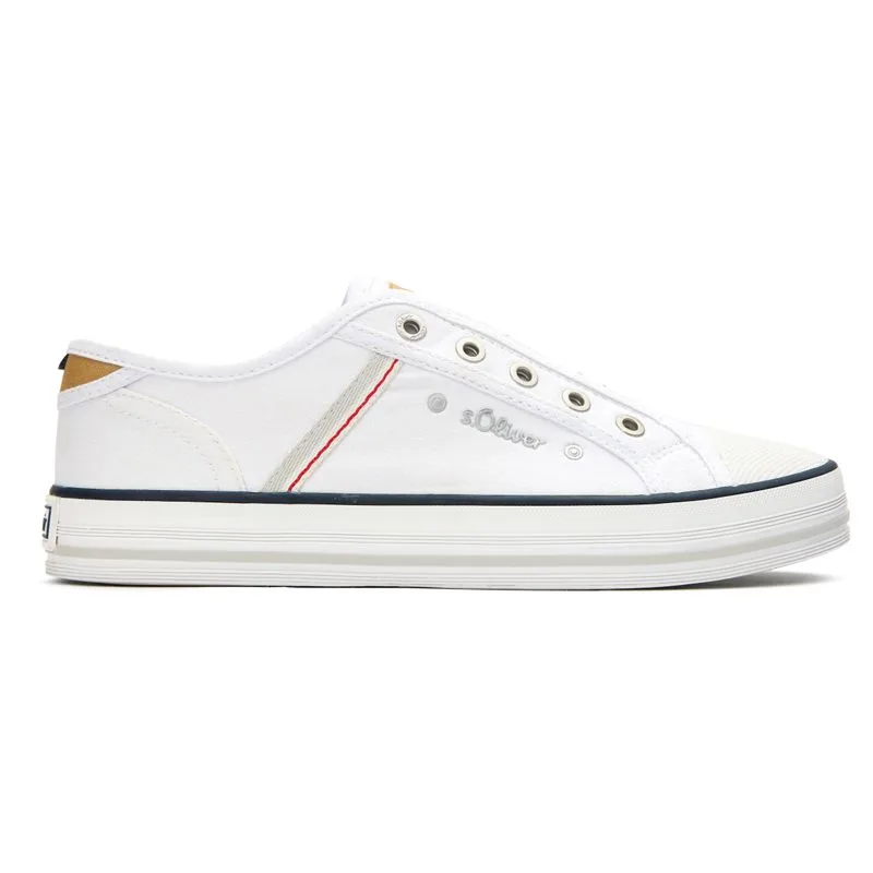 Witte S Oliver canvas instappers voor dames, gemaakt van katoen en een rubberen zool. Met: gegraveerde ringbranding, verborgen inzetstukken, instapper en zachte schuimrubberen binnenzool.