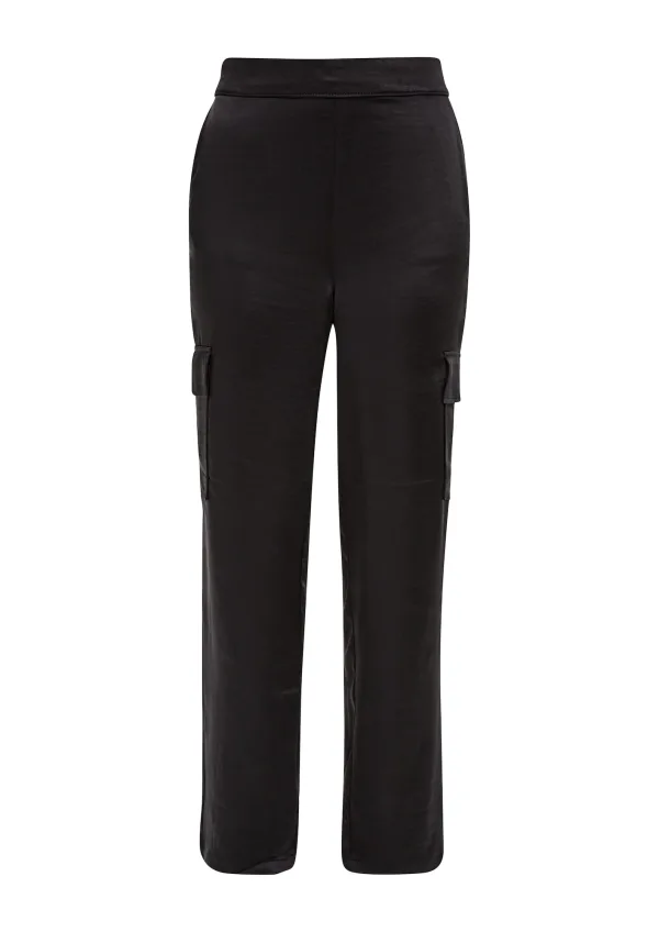 Design: Elastische taille/zoom, Cargozak, Zakken aan de zijkant; Materiaal: Satijn; Motief: Effen; Details: Gedrapeerd; Extra's: Gladde stof; Lengte: Lang/maxi; Pasvorm: Loosefit; Taillehoogte: High waist