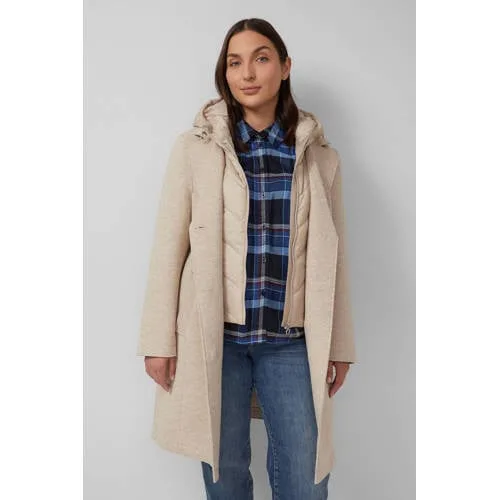 Deze s.Oliver Curve jas heeft een capuchon en lange mouwen. De jas sluit met een rits en knopen, je vindt zakken aan de voorkant. Ideaal voor koude dagen in de winter.