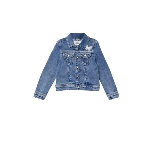 Jeansjack van s.Oliver RED LABEL voor kinderen;Look: effen;Pasvorm: Regular fit ;Kraagmodel: Platte kraag;Sluiting: enkele drukknoopsluiting;Applicatie: Patch met motief;Details: Naden, rugpas ;Mouwvorm: lange mouwen;Mouwboord: Manchet;Zakken: Borstzakken;Materiaalverwerking: Denim;Materiaal: Mix van katoen en lyocell