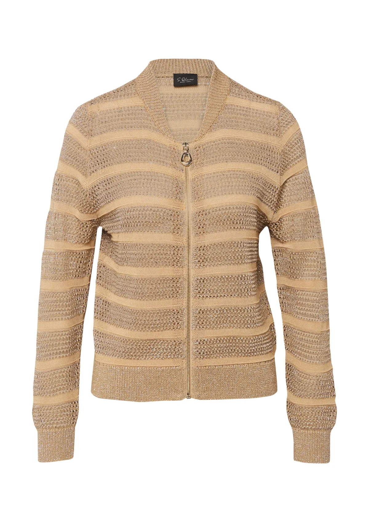 Design: Geribbelde kraag, Geribd ceintuurtje; Type sluiting: Ritssluiting; Materiaal: Knitwear; Halstype: Ronde hals; Motief: Gestreept; Details: Mesh; Extra's: Glitterend, Met textuur; Pasvorm: Normale pasvorm; Armlengte: Lange mouw; Lengte: Normale lengte