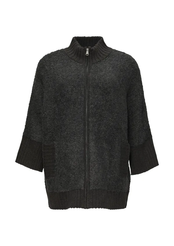 Design: Geribd ceintuurtje, Zakken aan de zijkant; Type sluiting: Ritssluiting; Materiaal: Bouclé; Halstype: Opstaande kraag; Motief: Effen; Extra's: Met textuur; Pasvorm: Losse pasvorm; Armlengte: Driekwart mouw; Lengte: Normale lengte