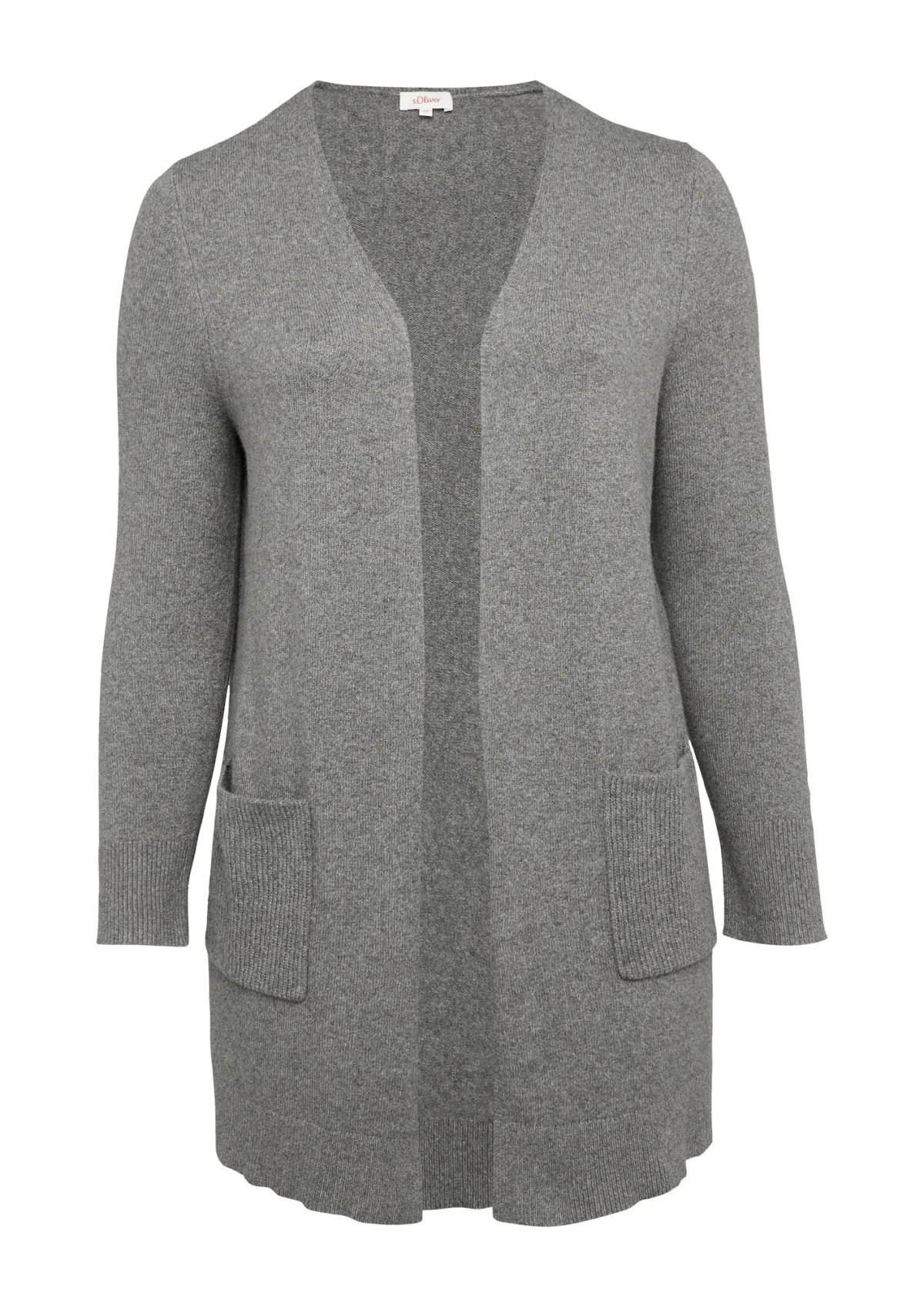 Design: Opgezette zakken; Materiaal: Knitwear; Motief: Mélange; Extra's: Fully fashioned; Pasvorm: Normale pasvorm; Armlengte: Lange mouw; Lengte: Lange pasvorm