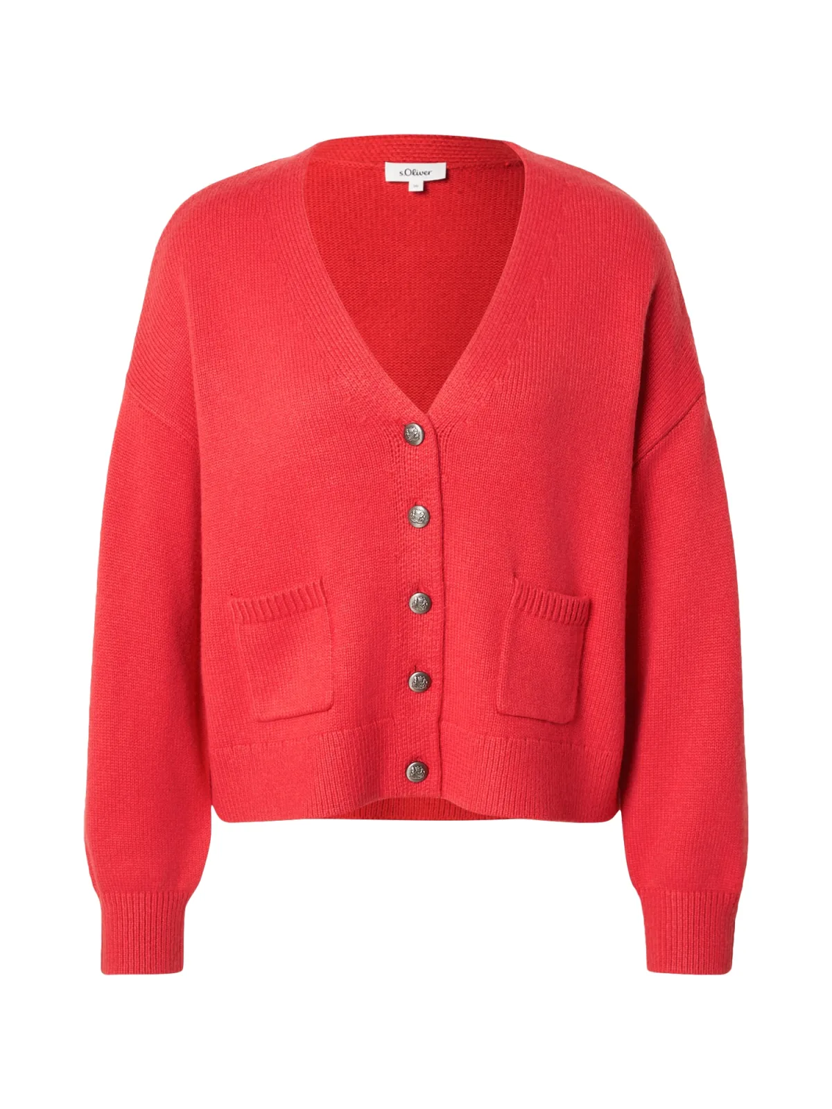 Design: Geribd ceintuurtje, Overcut schouder, Opgezette zakken; Type sluiting: Knoopsluiting; Materiaal: Knitwear; Halstype: V-hals; Motief: Effen; Extra's: Fully fashioned, Voelt zacht aan; Pasvorm: Losse pasvorm; Armlengte: Lange mouw; Lengte: Normale lengte