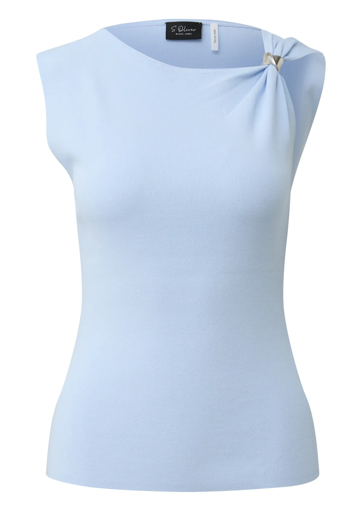 Deze lichtblauwe fijngebreide top zonder mouwen van s.Oliver BLACK LABEL is een stijlvolle basic voor dagen waarop je net wat meer verzorging in je outfit wilt. De slanke pasvorm volgt rustig je silhouet, terwijl het zachte breisel prettig aanvoelt op de huid. Dankzij de subtiele plooitjes en siergesp oogt de top direct gekleed, of je nu naar kantoor gaat, een etentje hebt of een casual dag plant.Verfijnde details in een soepel breisel Gemaakt met 65% viscose en 35% polyamide voor een soepele, gladde touch Fijn breisel dat mooi valt en niet snel grof oogt Slim fit pasvorm die aangesloten maar niet strak zit Mouwloos model, ideaal voor warme dagen of onder een blazer Plooien en siergesp aan de voorkant voor een verzorgde, vrouwelijke uitstraling Lichtblauwe kleur die makkelijk te combineren is met neutrale en donkere tinten Geschikt voor casual, feestelijke én zakelijke gelegenhedenVan werkdag tot dinerVoor een werkdag combineer je de top eenvoudig met een nette pantalon en blazer. In het weekend staat hij goed op een jeans of een lichte chino. De mouwloze snit maakt het een fijn item voor zomerse dagen, maar ook als laagje onder een vest of jasje blijft de top mooi in vorm.s.Oliver BLACK LABEL: moderne eleganties.Oliver BLACK LABEL staat voor doordachte mode met een nette, moderne uitstraling. De collecties zijn ontworpen met aandacht voor pasvorm en draaggemak, zodat je er de hele dag verzorgd uitziet zonder in te leveren op comfort. Deze top past daar perfect bij als betrouwbare basis voor vele outfits.Een veelzijdige, lichtblauwe knit die je garderobe rustig en stijlvol aanvult.