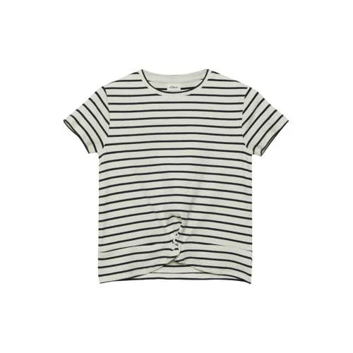 Dit gestreepte meisjes T-shirt van s.Oliver is een praktische basic voor elke dag. Het shirt heeft een klassieke ronde hals, korte mouwen en een regular fit, waardoor het soepel valt en makkelijk te combineren is met een jeans, rok of korte broek. De wit / zwarte strepen en het subtiele knoopdetail aan de voorkant geven het shirt een speelse uitstraling.Belangrijke kenmerken op een rij Gemaakt van een zachte katoenmix met 95% katoen en 5% elastaan Elastisch materiaal voor extra bewegingsvrijheid Regular fit, comfortabel voor school en vrije tijd Ronde hals en korte, rechte mouwen Ribstof met gebreide strepen voor een moderne look Knoopdetail als subtiel accent aan de voorkant Gestreepte print in wit / zwart, makkelijk te combineren Geschikt voor schoolkind en tiener, 1 T-shirt per verpakkingVoor elke dag in de kinderkledingkastDit T-shirt komt uit de 'Daily' collectie en is geschikt voor alledaags gebruik. De elastische stof beweegt soepel mee tijdens spelen, sporten of een schooldag. Draag het los op een jeans of stop het deels in een rok voor een nettere uitstraling.s.Oliver: eigentijdse stijl voor kinderens.Oliver staat bekend om moderne, toegankelijke mode voor het hele gezin. De kinderkleding is ontworpen met aandacht voor draagcomfort, praktische details en tijdloze prints. Zo krijgt je kind kleding die prettig zit en er verzorgd uitziet, dag na dag.Een praktische basic met een gestreept dessin voor elke dag.