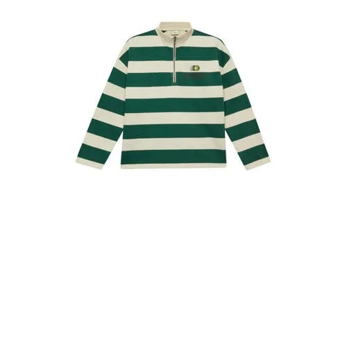 Deze s.Oliver sweater jongens is gemaakt voor dagelijks gebruik. Het zachte sweatshirt van sweatstof heeft een gestreepte look en valt duidelijk oversized. De opstaande kraag met halve ritssluiting geeft extra karakter en maakt het aan- en uittrekken eenvoudig. Voor en achter is een print aangebracht, waardoor de sweater van alle kanten herkenbaar is.Comfortabele sweater met opvallende details Oversized pasvorm met wijde mouwen en verlaagde schoudernaden voor een relaxte look Hooggesloten, ronde hals met opstaande kraag die prettig aansluit Halve ritssluiting aan de voorkant voor makkelijk aan- en uittrekken en extra ventilatie Gestreept motief gecombineerd met print op de voorkant en backprint voor een moderne uitstraling Gemaakt van 90% katoen en 10% polyester voor een zachte en soepele sweatkwaliteit Lange mouwen, geen zakken voor een rustig en clean silhouetIdeaal voor elke dagDeze sweater is geschikt voor schooldagen, vrije tijd en alles daartussenin. De oversized pasvorm geeft volop bewegingsvrijheid, terwijl de sweatstof comfortabel aanvoelt op de huid. Over een T-shirt of direct op de huid, de halve rits maakt het eenvoudig om de warmte te reguleren.s.Oliver als vertrouwde keuzes.Oliver staat bekend om eigentijdse kleding met een comfortabele pasvorm. De ontwerpen combineren praktische details met een moderne stijl, zodat kinderen zich vrij kunnen bewegen en tegelijk goed gekleed zijn. Met deze sweater kies je voor een merk dat aandacht heeft voor pasvorm en draagcomfort.Een praktische sweater met opvallende details voor de kledingkast van elke jongen die houdt van een ruime pasvorm en een stoere sweatlook.