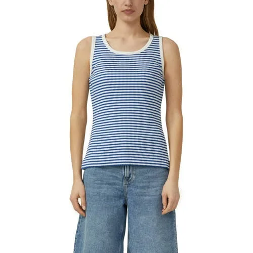 Op zoek naar een frisse basic voor warme dagen die je het hele seizoen blijft pakken? Dit blauw-wit gestreepte topje van s.Oliver is een mouwloze gestreepte top voor dames met een slanke pasvorm en een zachte feel. De combinatie van 61% katoen, 36% modal en 3% elastine geeft de jersey ribstof een soepele stretch, waardoor de top prettig aansluit zonder te strak te voelen. De ronde hals en brede schouderbandjes zorgen voor een rustige, tijdloze uitstraling.Waarom deze top zo fijn is Gemaakt van 61% katoen, 36% modal en 3% elastine voor een zachte, elastische stof Slim fit pasvorm die mooi aansluit op het lichaam Mouwloos ontwerp met brede schouderbandjes voor comfortabele bedekking Blauw/wit gestreept motief dat makkelijk combineert met je garderobe Jersey ribstof voor extra draagcomfort en een mooie structuur Casual stijl, ideaal voor dagelijks gebruik in de zomerEenvoudig combineren in je dagelijkse outfitsDeze gestreepte top past goed bij een lichte jeans, een linnen broek of een korte broek. Door de slanke pasvorm draag je hem ook makkelijk onder een open blouse of dun vest. Perfect voor een vrije dag, een zomerse stadswandeling of een relaxte werkdag in een casual setting.s.Oliver: eigentijdse basics voor elke dags.Oliver staat bekend om toegankelijke mode met een moderne, draagbare stijl. De collecties draaien om kleding die goed voelt, mooi valt en past bij het dagelijks leven. Met deze top kies je voor een betrouwbaar item dat je garderobe op een praktische manier aanvult.Een lichte, gestreepte basic die je zonder nadenken uit de kast trekt op zonnige dagen.