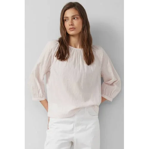 Voor een ontspannen maar verzorgde look is deze gestreepte roze dames top met 3/4 mouwen geschikt voor elke dag. De top heeft een relaxed fit en valt soepel om het lichaam. De zachte roze en witte strepen geven een rustige uitstraling, passend bij alledaagse momenten. De ronde hals en striksluiting zorgen voor een subtiel detail, terwijl de plooiaccenten en ballonmouwen een extra accent geven.Kenmerken van deze gestreepte top Gemaakt van 50% katoen en 50% viscose voor een soepele, zachte touch Relaxed fit voor een luchtig en comfortabel gevoel Ronde hals met striksluiting als subtiel detail 3/4 ballonmouwen die losjes om de armen vallen Gestreept motief in roze/wit voor een lichte voorjaarslook Casual stijl, passend bij de Daily collectie van s.Oliver Geen zakken voor een rustige, nette voorkantCasual styling voor elke dagDeze top past goed bij een lichte jeans of chino voor een casual dag op kantoor of thuis. De 3/4-mouwen zijn praktisch in het voorjaar en op koelere zomerdagen. Draag de top los over een smalle broek of half ingestopt in een rok voor een iets formelere uitstraling.s.Oliver als dagelijkse basis in je garderobes.Oliver staat bekend om toegankelijke mode voor elke dag, met aandacht voor pasvorm en draaggemak. De collecties sluiten aan bij een moderne, actieve levensstijl en combineren trends met tijdloze basics. Zo vul je je garderobe eenvoudig met kledingstukken waar je vaak en graag naar grijpt.Een top die je gemakkelijk combineert, van doordeweekse werkdagen tot ontspannen weekendmomenten.