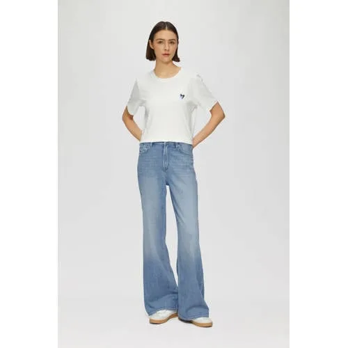 De s.Oliver damesjeans in medium blue denim heeft een high waist en een wide leg pasvorm. Dit model biedt een rits- en knoopsluiting en heeft riemlussen. De 5-pocketstijl maakt het design helemaal af. Gemaakt van denim.