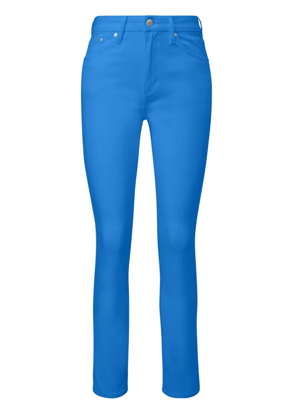 Design: Gevoerde zoom/rand, 5-pocket-style, Knop sluiting; Type sluiting: Knoopsluiting; Materiaal: Denim; Motief: Effen; Extra’s: Op staal naden, Riemlussen; Wassing: Colored denim; Lengte: 7/8 lengte; Pasvorm: Slimfit; Taillehoogte: Mid waist