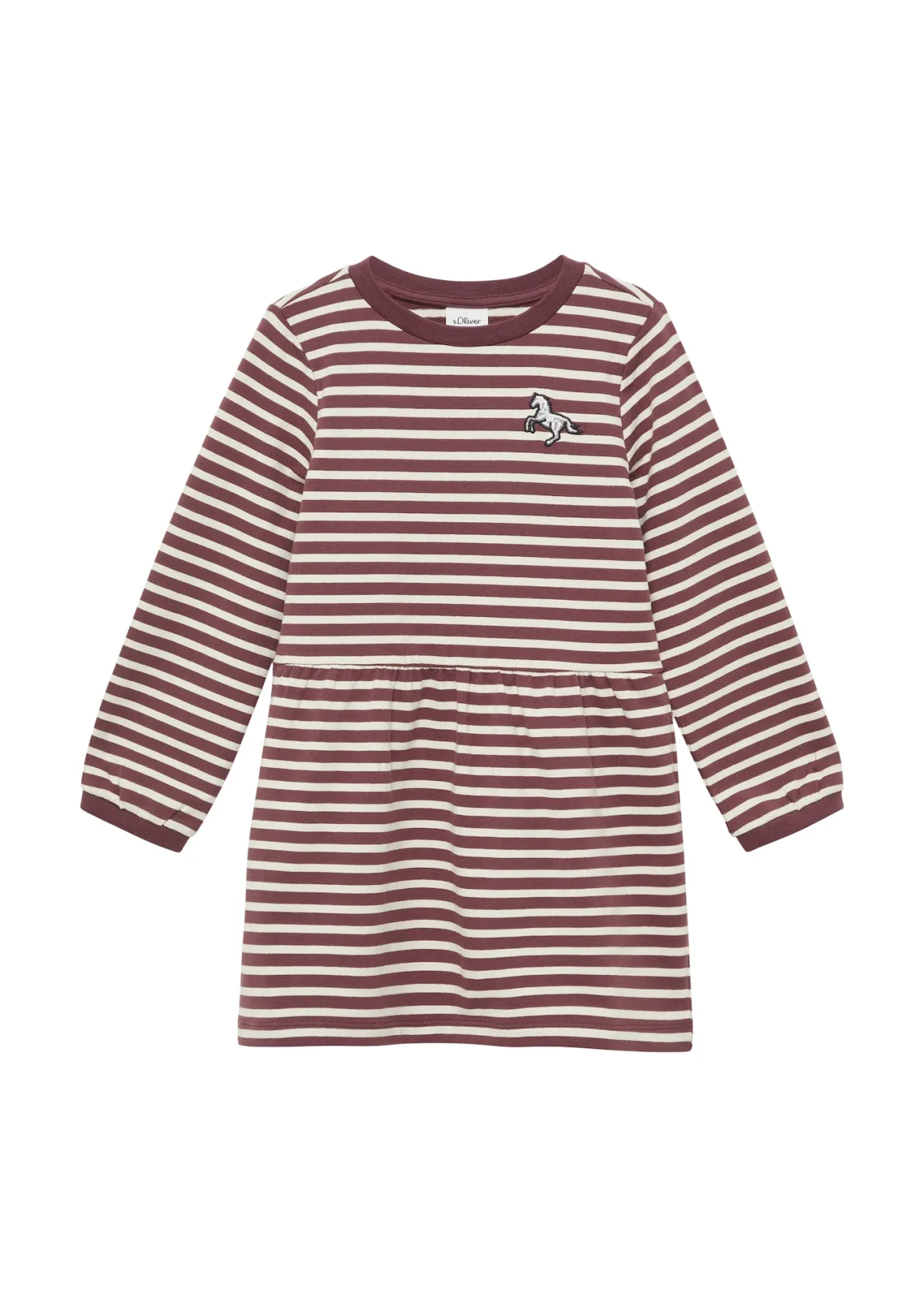 Design: Gevoerde zoom/rand, Geribbelde kraag; Materiaal: Jersey; Halstype: Ronde hals; Motief: Gestreept; Details: Borduursels, Gedrapeerd; Extra's: All-over patroon, Voelt zacht aan; Lengte: Knielengte; Pasvorm: Normale pasvorm; Armlengte: Lange mouw