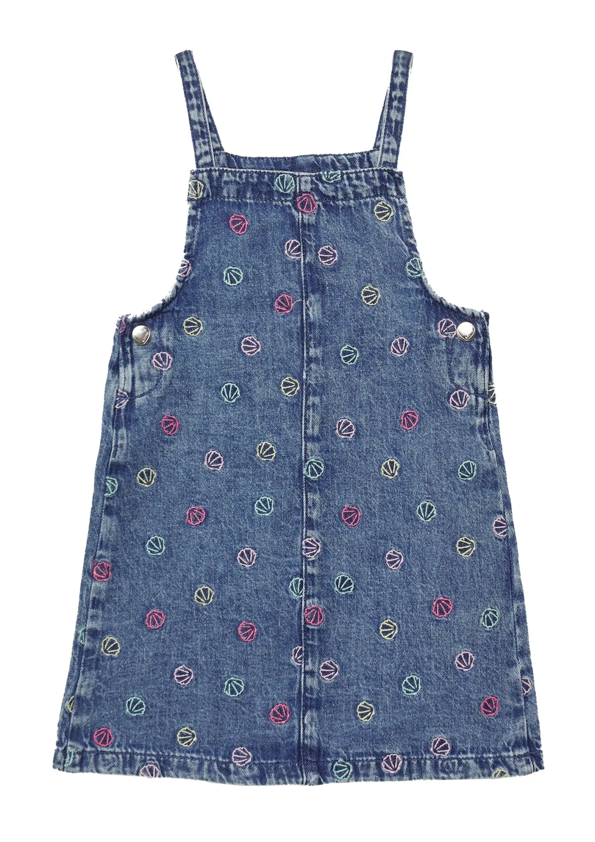 Design: Gevoerde zoom/rand; Type sluiting: Knoopsluiting; Materiaal: Denim; Halstype: Carréhals; Soort bandjes: Normale bandjes; Details: Borduursels; Extra's: All-over patroon, Gewassen effect; Lengte: Kort/mini; Pasvorm: Losse pasvorm; Armlengte: Mouwloos