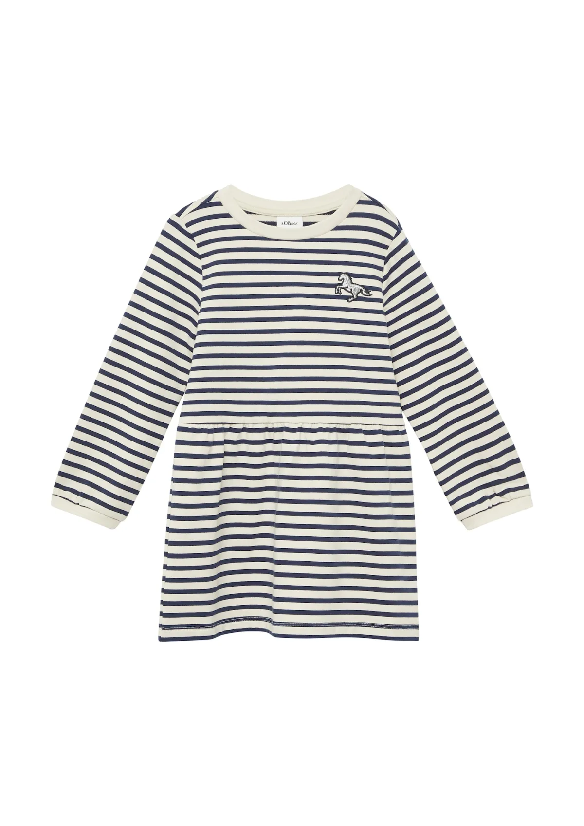 Design: Gevoerde zoom/rand, Geribbelde kraag, Rechte zoom, Nektape; Materiaal: Jersey; Halstype: Ronde hals; Motief: Gestreept; Details: Borduursels, Gedrapeerd; Extra's: All-over patroon, Voelt zacht aan; Lengte: Knielengte; Pasvorm: Normale pasvorm; Armlengte: Lange mouw