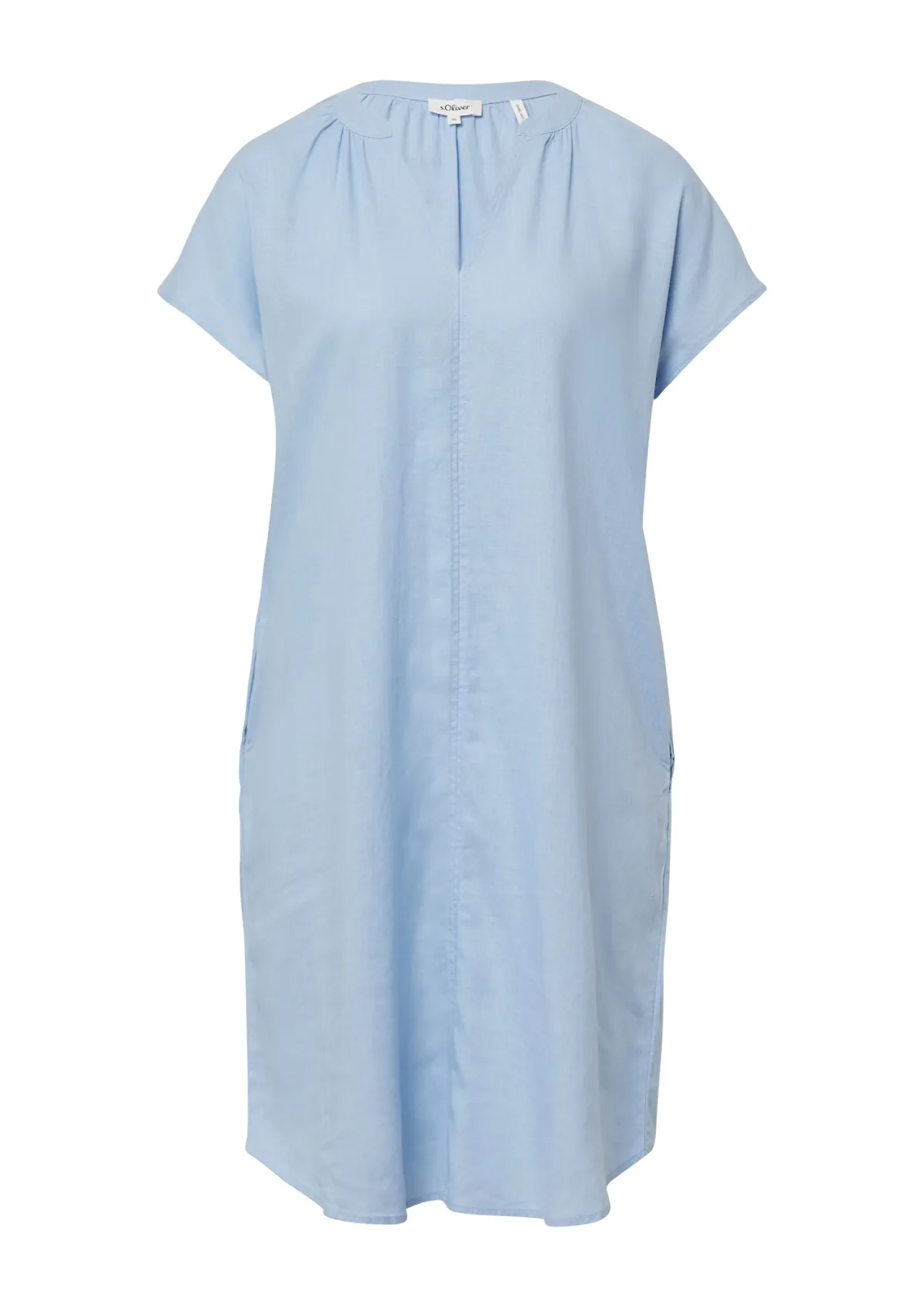 Design: Zakken aan de zijkant; Materiaal: Linnen; Halstype: Uitgesneden hals; Motief: Effen; Details: Gedrapeerd; Extra's: Gladde stof; Lengte: Knielengte; Snit: Recht; Pasvorm: Losse pasvorm; Armlengte: Kwartmouw