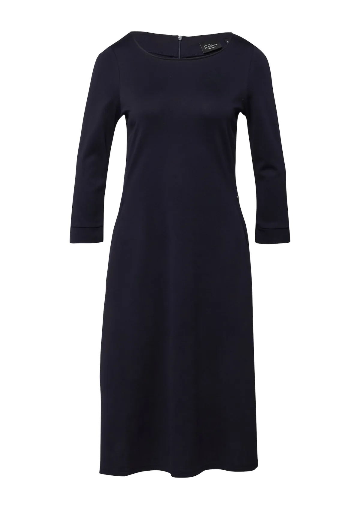 Dames vrijetijdsjurk van s.Oliver BLACK LABEL;Look: effen;Pasvorm: getailleerd;Lengte: knielang;Hals: Ronde hals;Sluiting: korte ritssluiting;Applicatie: Logo-applicatie;Mouwvorm: 3/4-mouw;Zoom: recht;Zakken: zij-steekzakken;Materiaal: Viscosemix