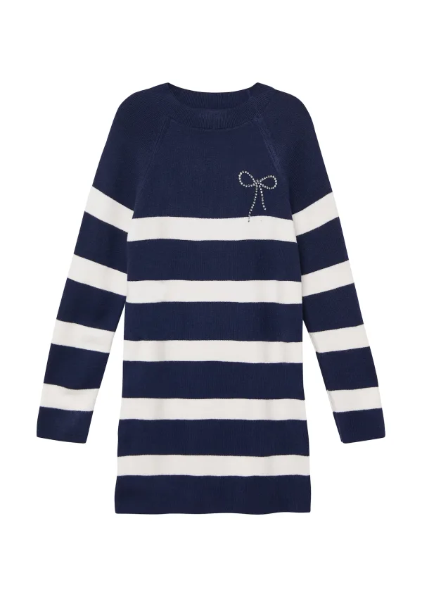 Design: Geribbelde kraag; Materiaal: Knitwear; Halstype: Ronde hals; Motief: Gestreept; Details: Sierstenen; Extra's: Met halfedelstenen, Voelt zacht aan; Lengte: Knielengte; Pasvorm: Normale pasvorm; Armlengte: Lange mouw