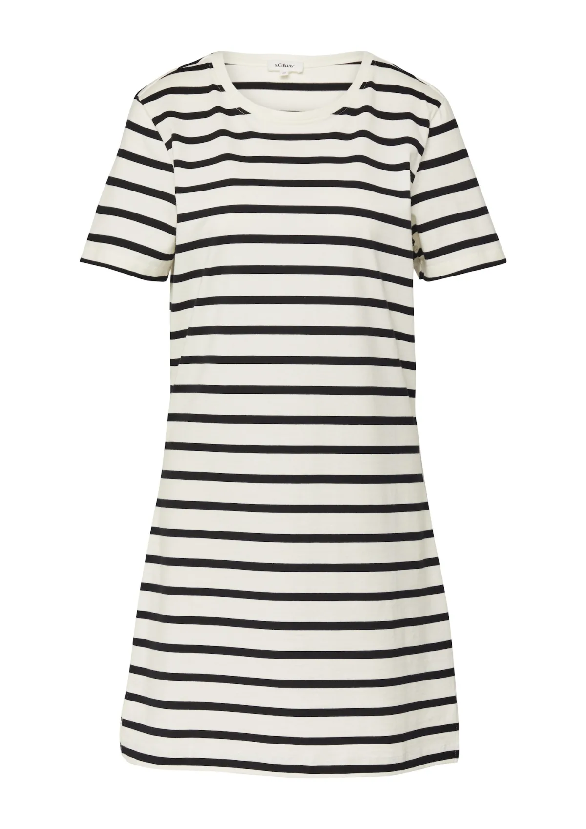 Design: Geribbelde kraag, Zijdelingse inkepingen, Nektape; Materiaal: Jersey; Halstype: Ronde hals; Motief: Gestreept; Extra's: All-over patroon, Voelt zacht aan; Lengte: Kort/mini; Snit: Recht; Pasvorm: Losse pasvorm; Armlengte: Kwartmouw